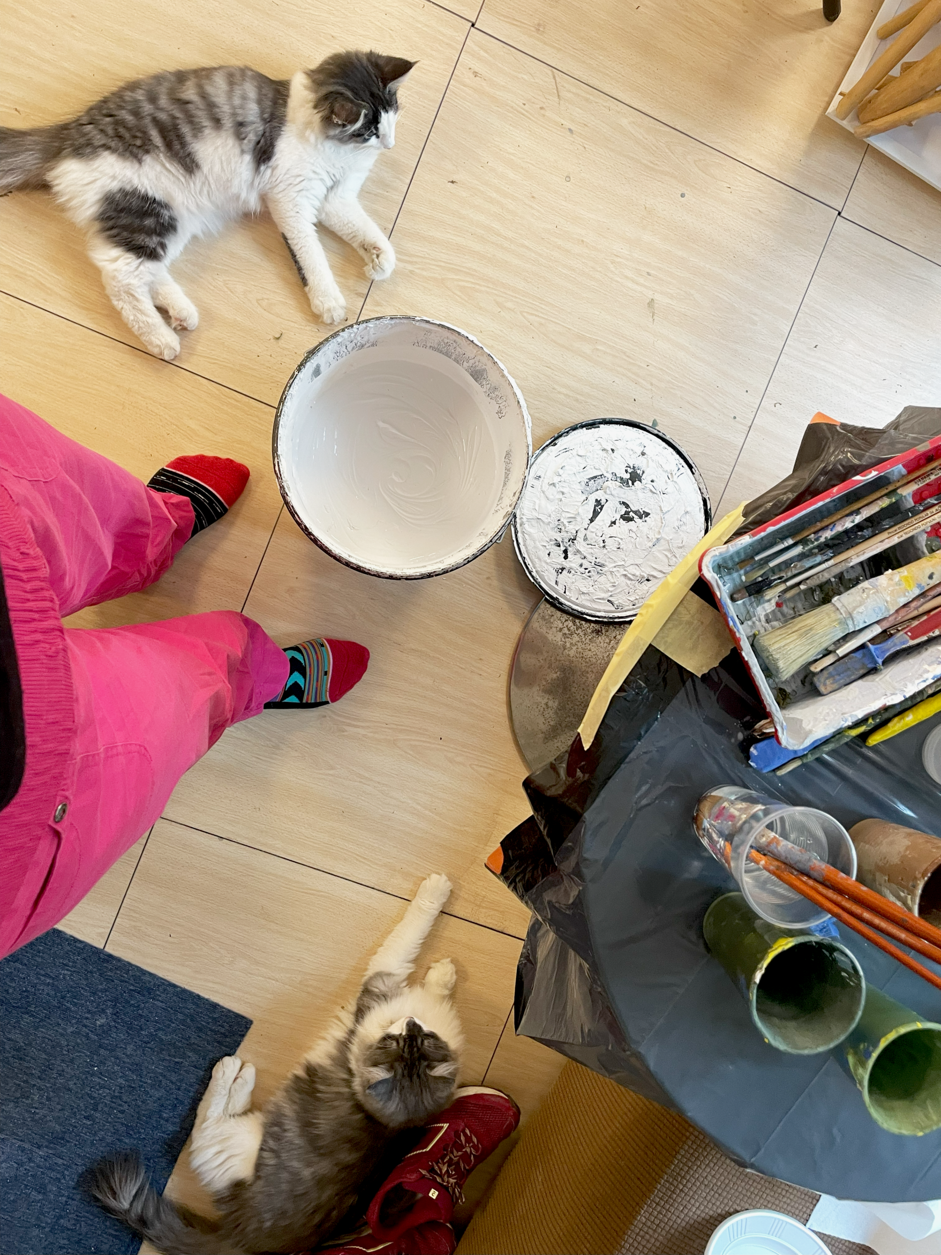 Painting murals to create a welcoming and creative space.